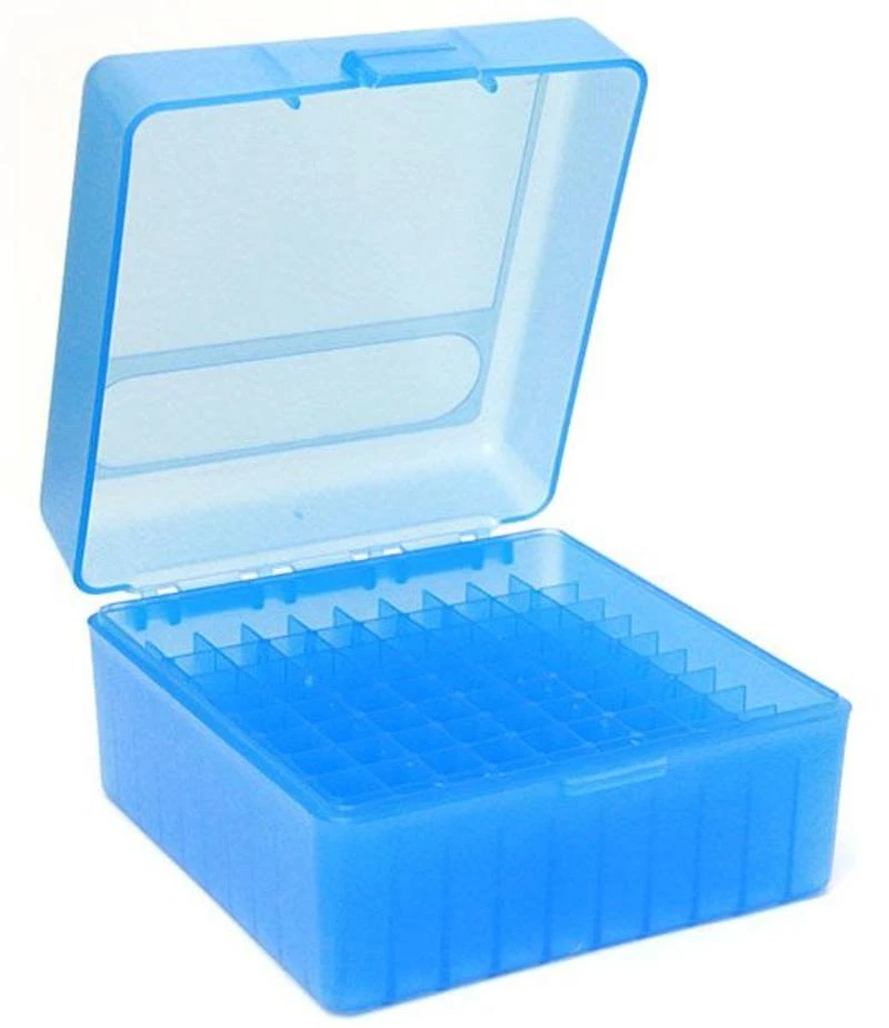 Carries 100 rounds of .223 / .204 / .222 ammunition, perfect for reloaders. Stackable with easy-grip, scuff-resistant textured surface.