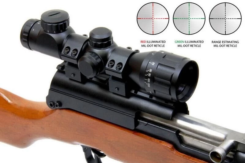 Mil-Dot sniper reticle with Red/Green Dual-Color mode to