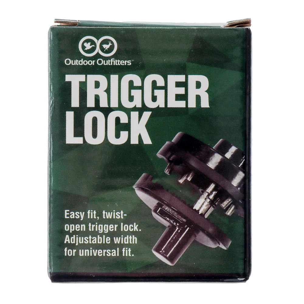 The Outdoor Outfitters Trigger Lock is made of hardened alloy with a steel and Zinc body and double-sided rubber lining for maximum durability. Features 3 digit combination for security.