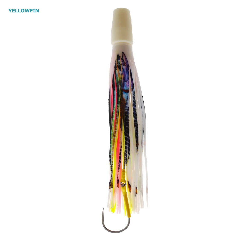 The Pakula 3D Printhead Guru Rigged Game Lure is a long corner, long rigger and shot gun special. Its straight, tight swimming action will continue in any sea conditions at most trolling speeds, including the slower fuel saving speeds of 6 to 6.5 knots. It features a new fishing skirt design for that ultra-realistic swimming action. The fish skirt and 3D patented lure head work together to give the lure an unbelievably attractive action and the option to run on multiple angles, perfect when trolling skirts for Marlin and Tuna. The Pakula 3D Printhead Guru Rigged Game Lure is a true testament to Pakula’s dedication to giving you only the best.